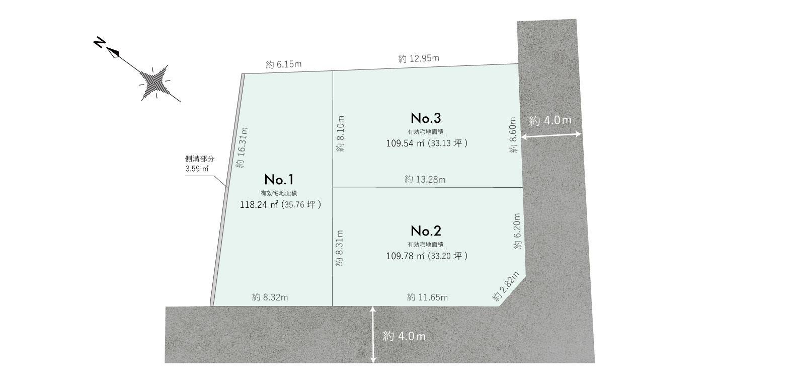 No.3 | 南側 私道 幅員約4.0m 接道約8.60m